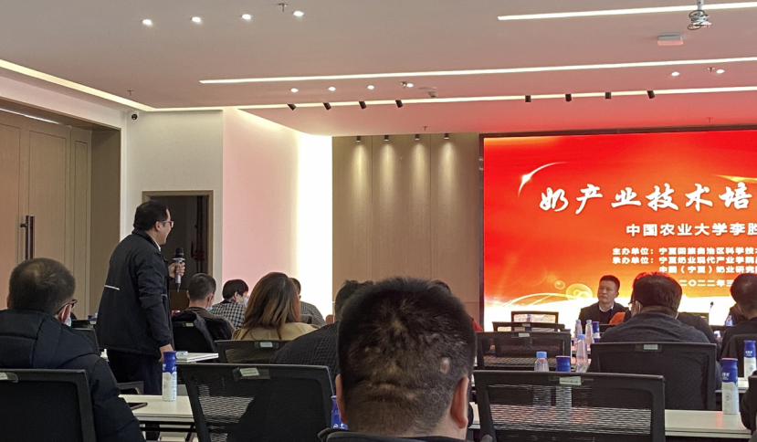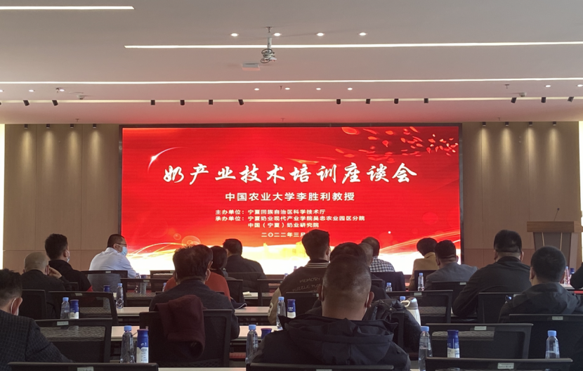 自治区牛产业科技创新团队首席专家马云教授携团队成员王玲教授、徐晓锋教授和马燕芬研究员,受邀赴吴忠市参加由宁夏回族自治区科学技术厅主办,中国奶业现代产业学院吴忠农业园区分院和中国(宁夏)奶业研究院承办的奶产业技术培训座谈会,参加本次座谈会的还有自治区科技厅农业农村处徐小涛处长、吴忠市科技局张琛局长、吴忠市高新区管委会马长军书记和来宁夏地区30多个奶牛养殖企业的代表人。