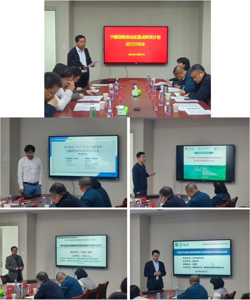 主持的2024年宁夏回族自治区重点研发计划“基于奶牛“母子一体化”精准营养关键技术研究与饲养技术示范(重大)”、“宁夏本地黄牛优异基因挖掘利用和高效良种繁育技术体系研究与应用(重大)”、“肉牛低成本健康高效养殖关键技术研发与示范(重大)”和“宁夏奶牛典型疾病预警模型与智慧管理系统构建及应用(重点)”四个项目联合启动会在麻豆做爱