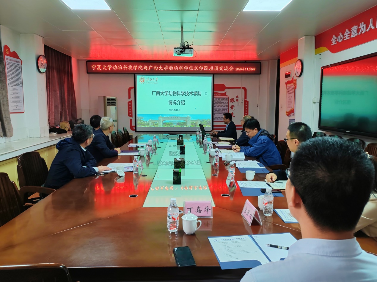 11月5日,学院李继东副书记、许立华教授和龚振兴研究员前往广西大学动物科学与技术学院,座谈会上,双方分别介绍了各自学院的相关情况,就学科建设、人才培养、博士点申报、教学动物医院管理及运营等进行了深入交流和探讨,并参观了广西大学教学动物医院。广西大学动物科学与技术学院韦小强书记、陆阳清院长、何家康副院长等领导和老师参加了此次交流活动。期间,在广西大学动物科学与技术学院蒋钦杨副院长陪同下,参观了位于青秀区刘圩镇谭村的田野牧歌肉牛产业示范区。