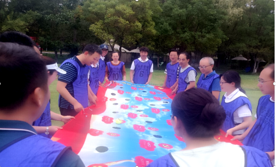 9月17日清晨,我们乘车进入位于西夏区的拓展基地,开始为期一天的活动。基地绿树环抱,郁郁葱葱,置身于清新而湿润的空气中,大家仿佛来到了一个天然大氧吧。而且天公作美,薄云蔽日,不用遮阳,无需打伞,暗自窃喜。拓展基地的教官有着丰富实训经验,看到大家初来乍到时略显拘谨,随即进行了较长时间的“破冰行动”,通过不同形式的列队、喊口令、握手、问好等一个又一个古灵精怪的集体热身活动,让大家迅速熟稔起来,加入拓展活动。