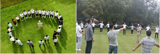 需要特别提到的是,教练看到大家餐后略显疲惫,迅速提出了应对方案。通过“疯狂”敲打同伴,打通“任督二脉”的小游戏,迅速驱走倦意,继续减少同事彼此间的生疏感,high起来。